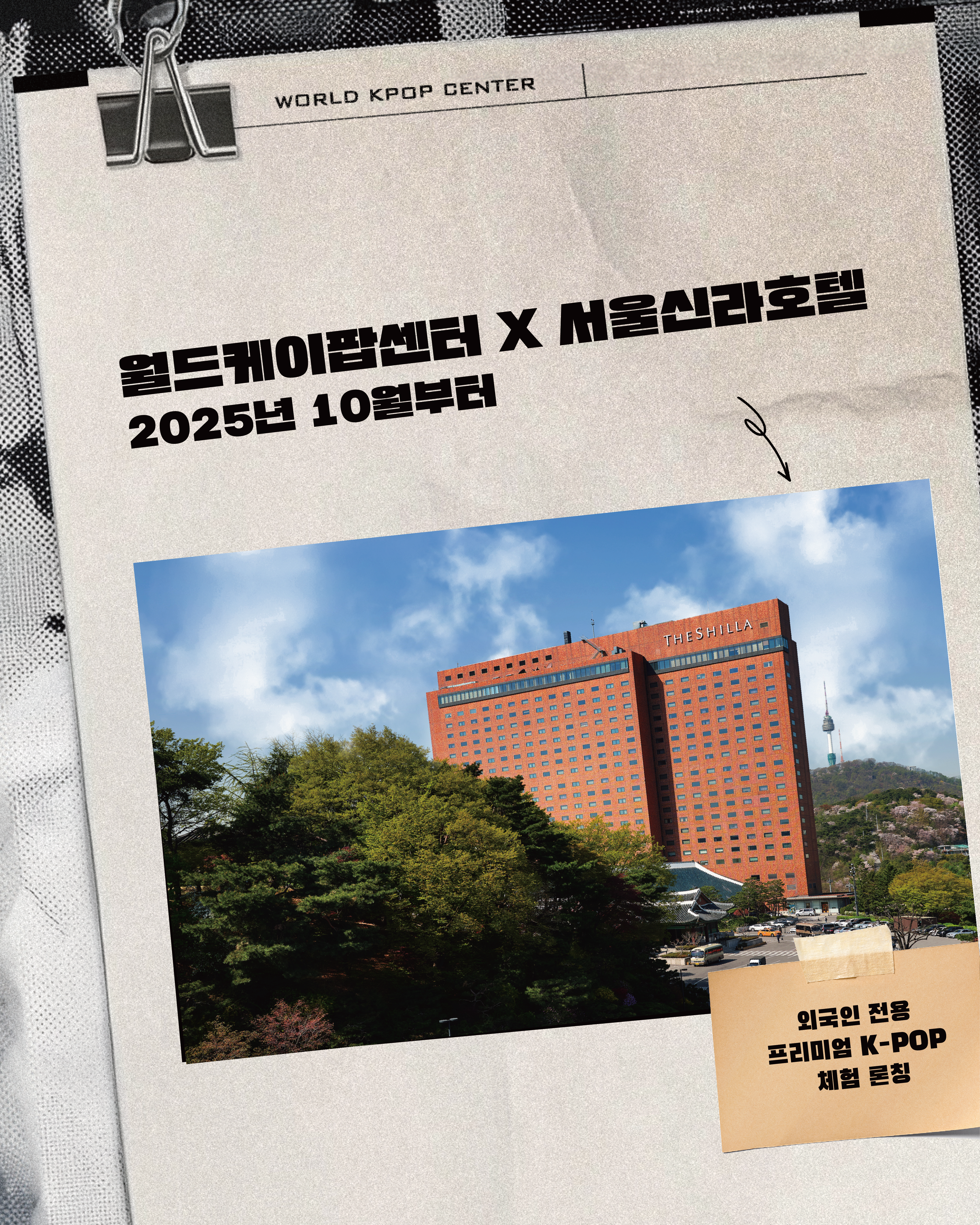 월드케이팝센터 x 서울신라호텔 k-pop 체험교육 월드케이팝센터 0 6 01.22 19:59 서울 신라호텔과 월드케이팝센터기 전략적 마케팅 제휴를 맺고, (2025년) 10월부터 서울 신라호텔에 투숙하는 외국인 고객을 대상으로 전용 k-pop 페험 프로그램을 론칭하였다.