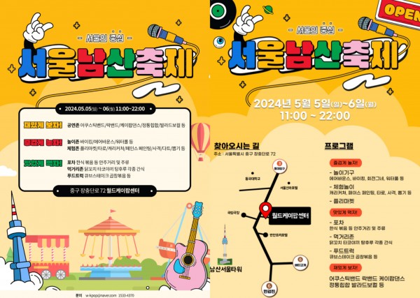 서울의 중심, 서울남산축제 5월 5일 개막... 중구 월드케이팝센터에서 공연·포차·놀이존·체험존